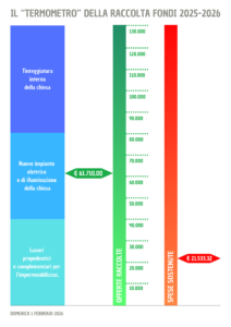 Ogni prima domenica del mese, raccogliamo offerte destinate agli interventi di ristrutturazione e miglioramento della chiesa. È un gesto concreto di cura e responsabilità per la nostra casa comune.